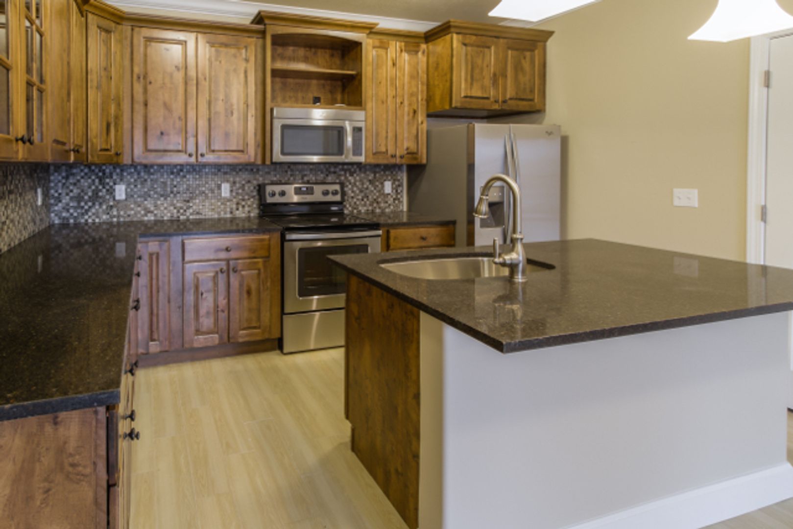 This open floor plan features a beautiful kitchen with stainless steel appliances and comes with a storage closet off the balcony.